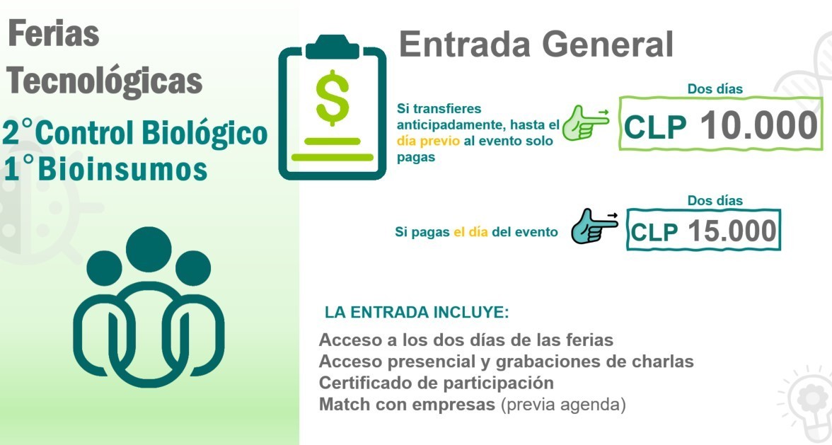En 2018 el Instituto de Investigaciones Agropecuarias INIA organizó la Primera Feria Tecnológica de Control Biológico que fue un evento de conexión entre la oferta y la demanda de biocontroladores en el cual participaron más de 20 empresas y 500 agricultores.